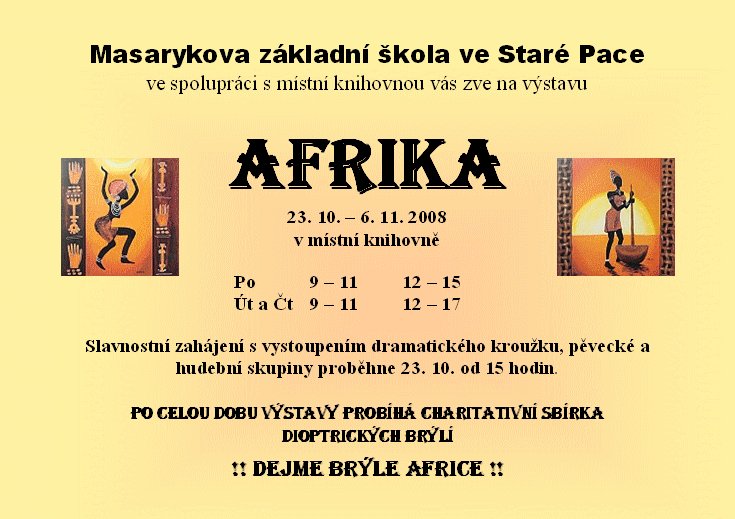 Výstava z prací žáků vytvořených při projektu Afrika