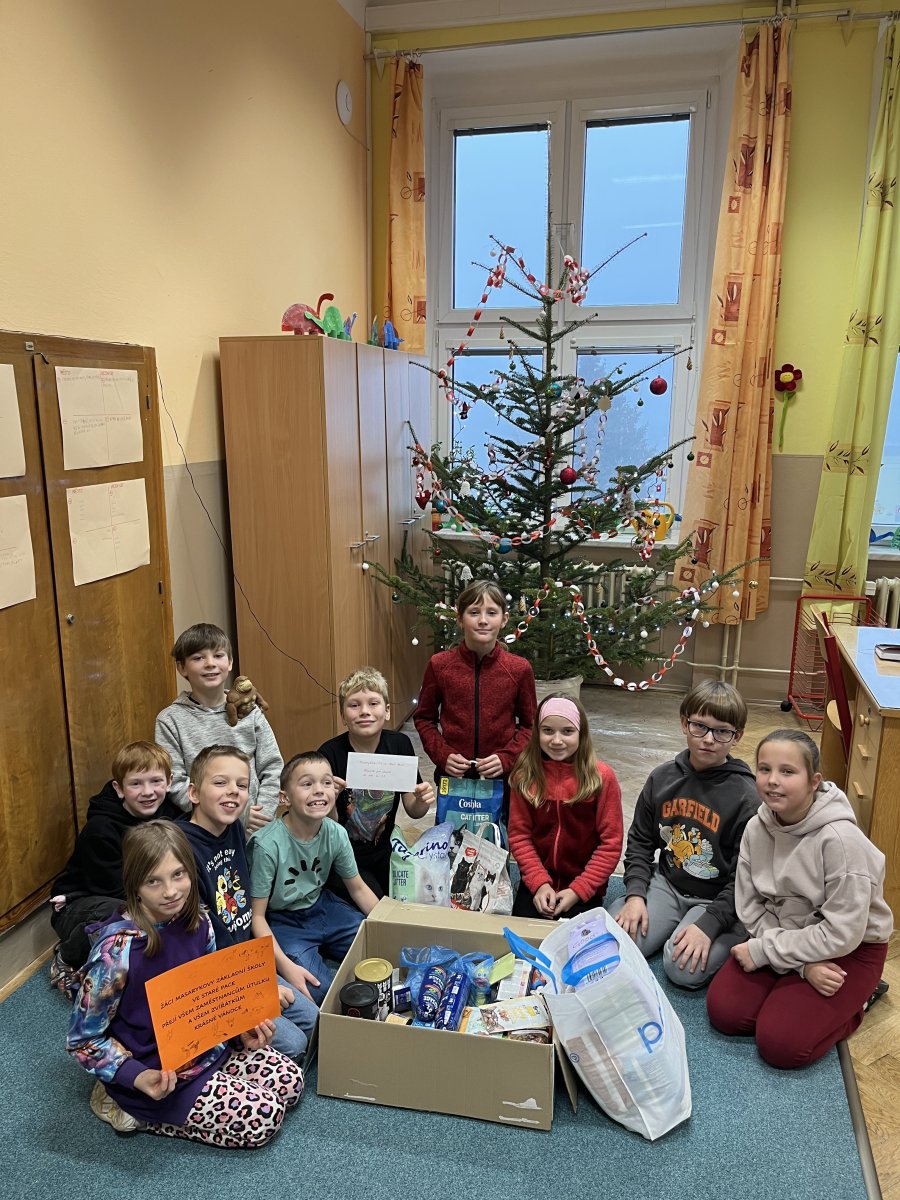 V rámci každoročního projektu Dobré skutky podpořili žáci 3.A, 3.B a 9. třídy útulek MÍSTO v Nové Pace. Nashromážděné krmivo, stelivo i drobné finanční dary jistě spolku trochu pomohou při zajišťování péče o opuštěné pejsky a kočičky.