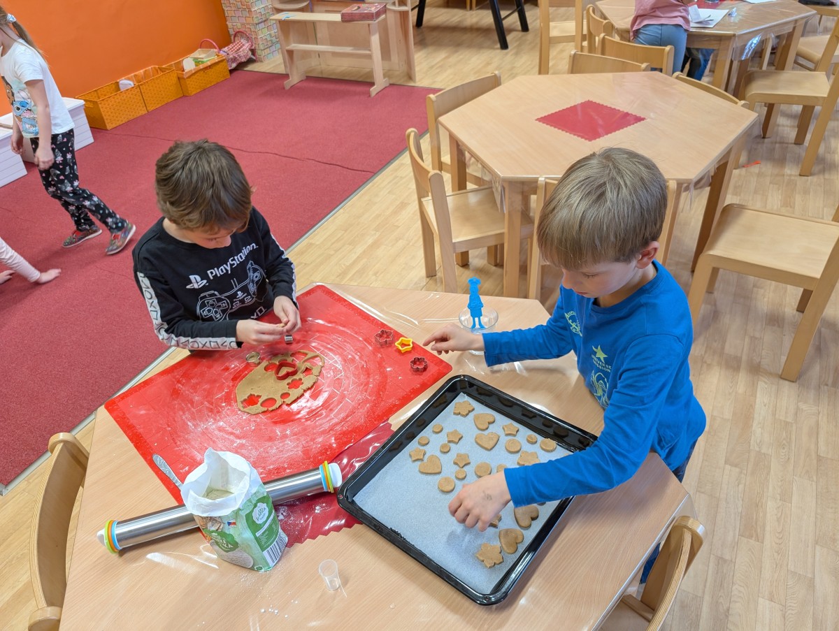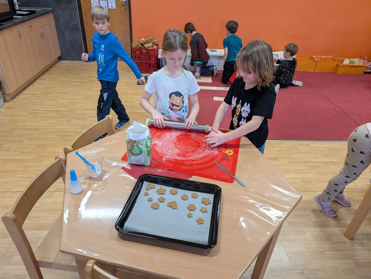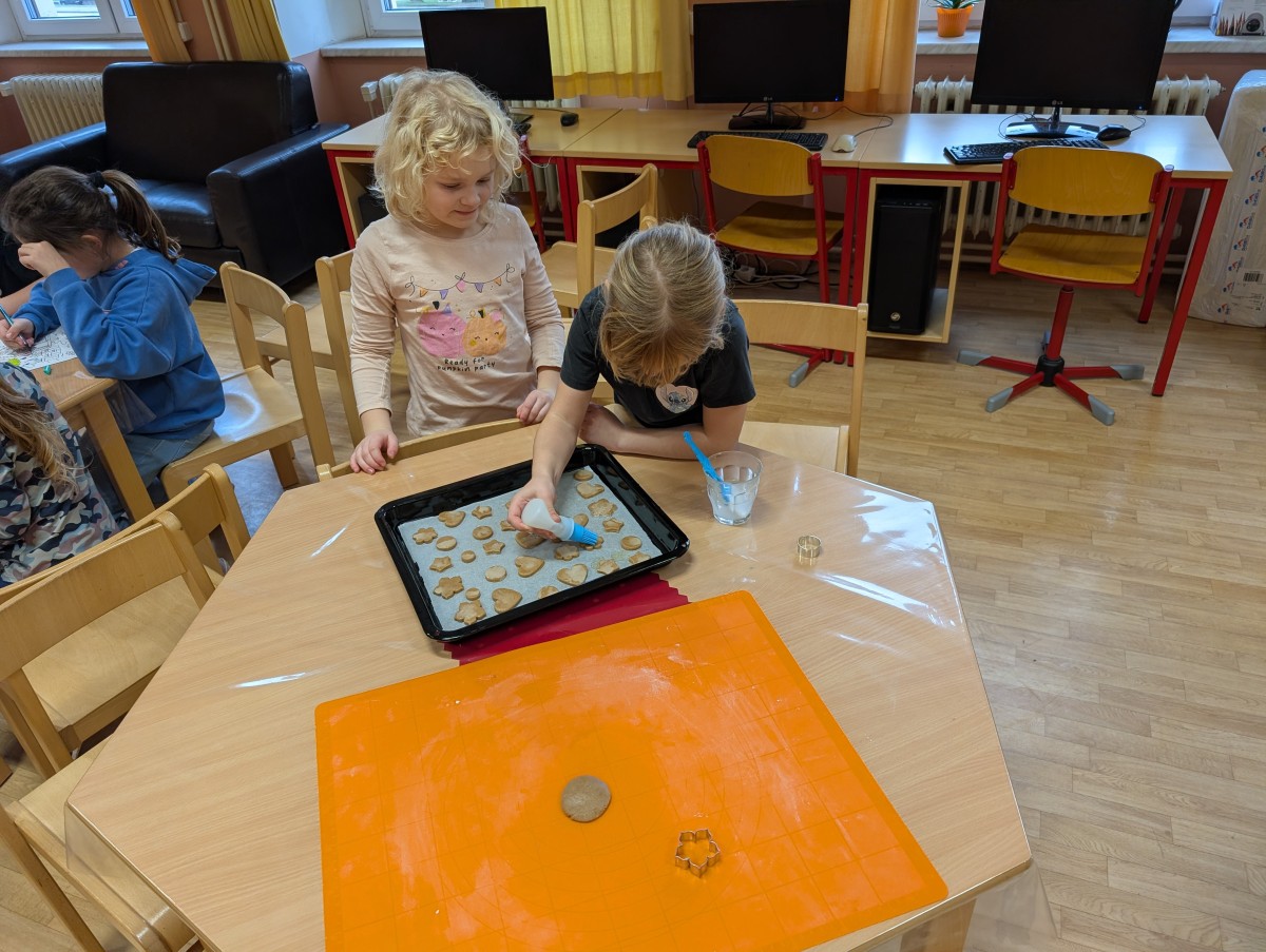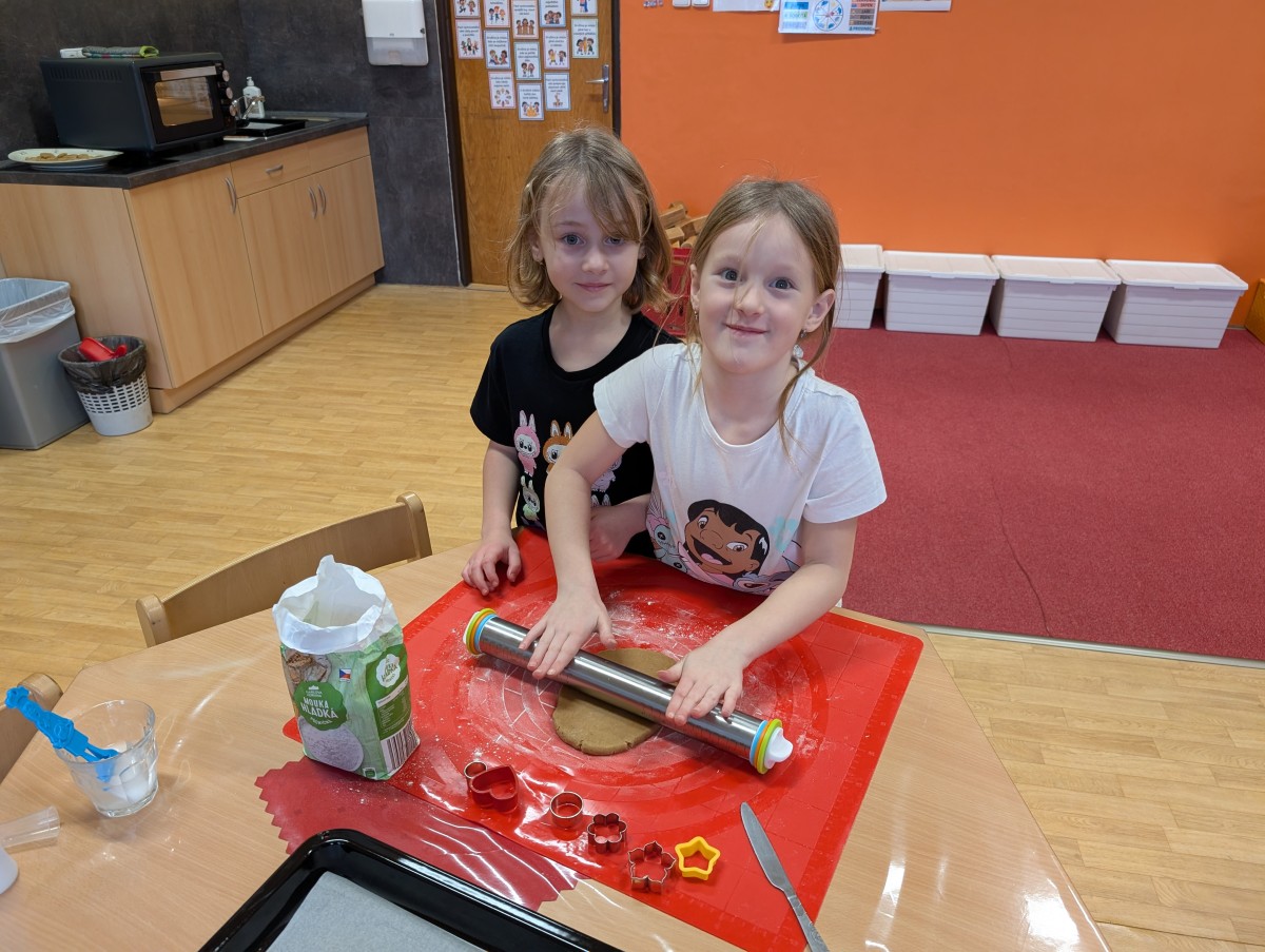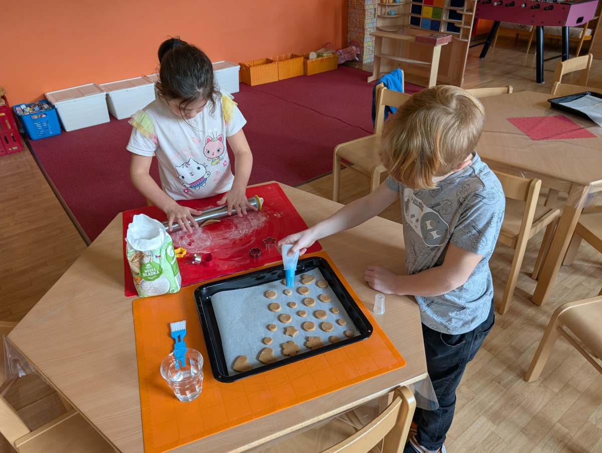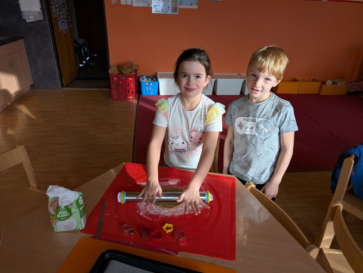 Ve školní družině se linula vůně perníčků a panovala radostná atmosféra. Děti z 1. třídy se s chutí pustily do pečení perníčků a zvládly téměř vše úplně samy. Od vykrajování až po přípravu plechů pracovaly s velkým nadšením, šikovností a pečlivostí. Děti pracovaly ve dvojicích, vzájemně si pomáhaly, domlouvaly se a krásně spolupracovaly. Bylo vidět, jak jsou samostatné a zručné, a že společná práce jim dělá radost. Jedinou pomoc poskytla paní vychovatelka při obsluze trouby, jinak děti zvládly celý proces samy. Velkou pochvalu si zaslouží také za to, že se nepřipálil ani jeden perníček. Výsledkem byly nejen voňavé a povedené dobroty, ale i krásný zážitek, na který budou děti dlouho vzpomínat.