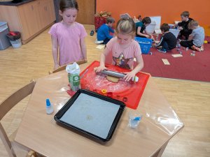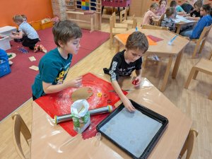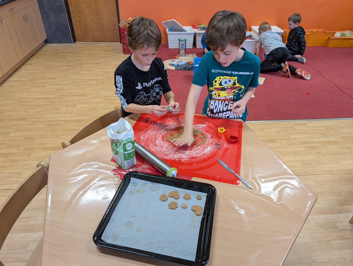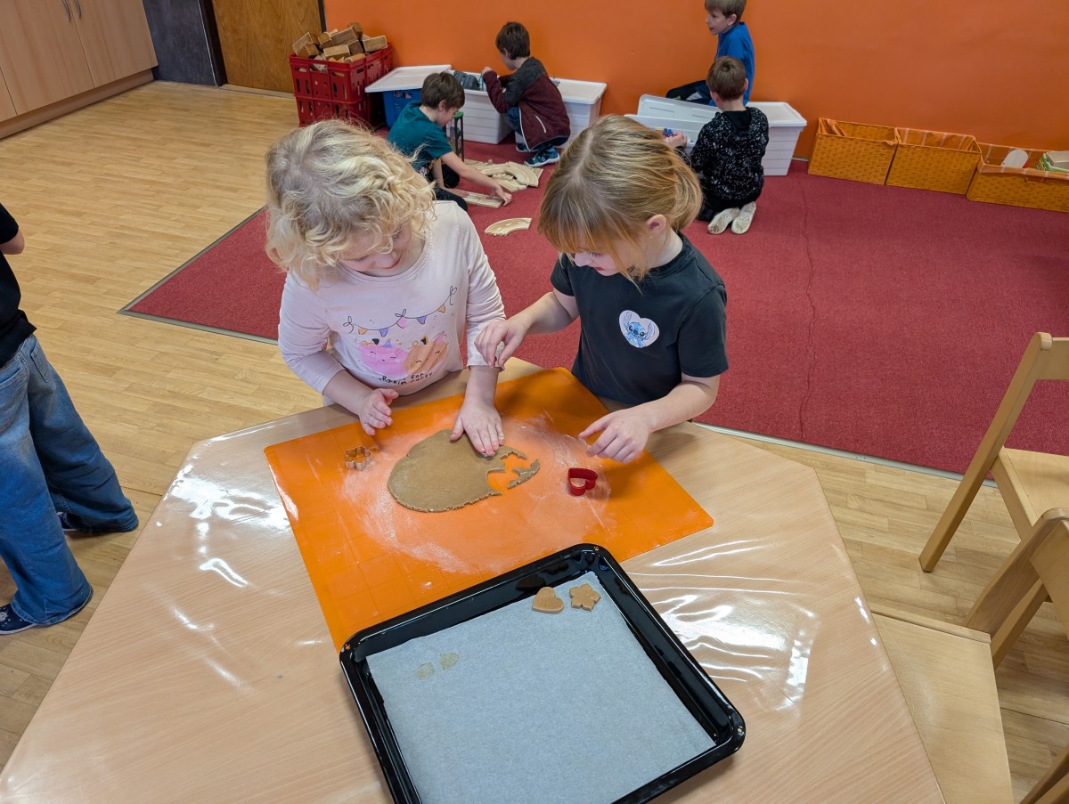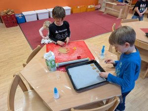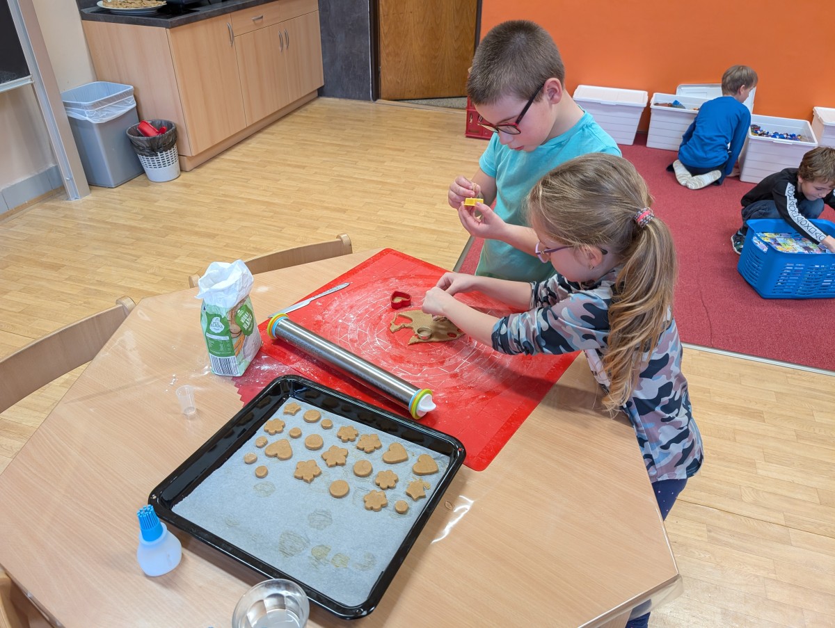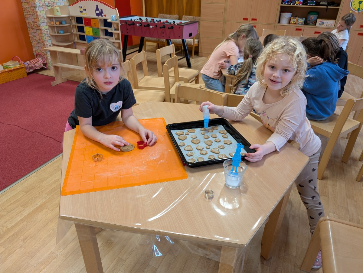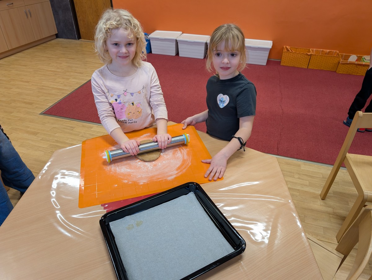 Ve školní družině se linula vůně perníčků a panovala radostná atmosféra. Děti z 1. třídy se s chutí pustily do pečení perníčků a zvládly téměř vše úplně samy. Od vykrajování až po přípravu plechů pracovaly s velkým nadšením, šikovností a pečlivostí. Děti pracovaly ve dvojicích, vzájemně si pomáhaly, domlouvaly se a krásně spolupracovaly. Bylo vidět, jak jsou samostatné a zručné, a že společná práce jim dělá radost. Jedinou pomoc poskytla paní vychovatelka při obsluze trouby, jinak děti zvládly celý proces samy. Velkou pochvalu si zaslouží také za to, že se nepřipálil ani jeden perníček. Výsledkem byly nejen voňavé a povedené dobroty, ale i krásný zážitek, na který budou děti dlouho vzpomínat.