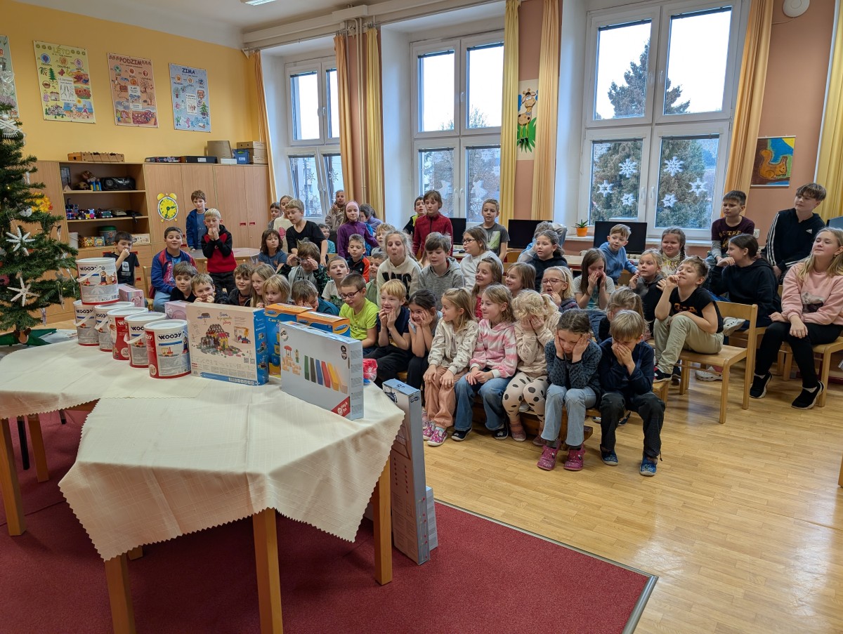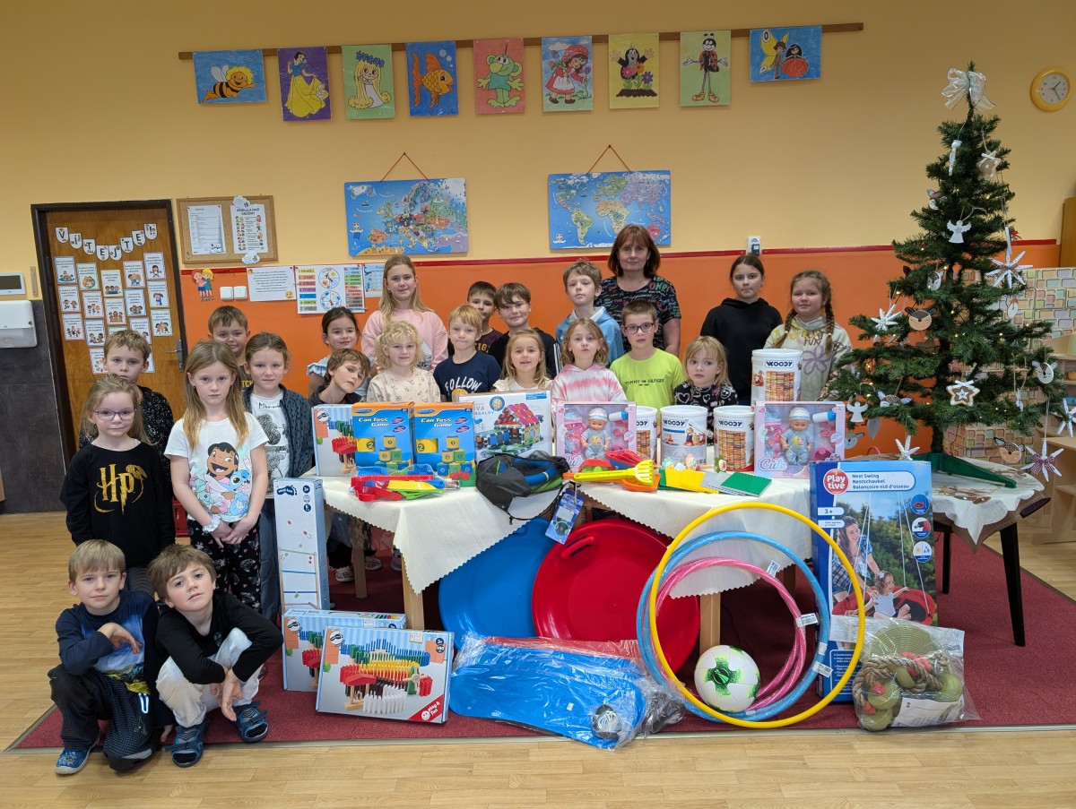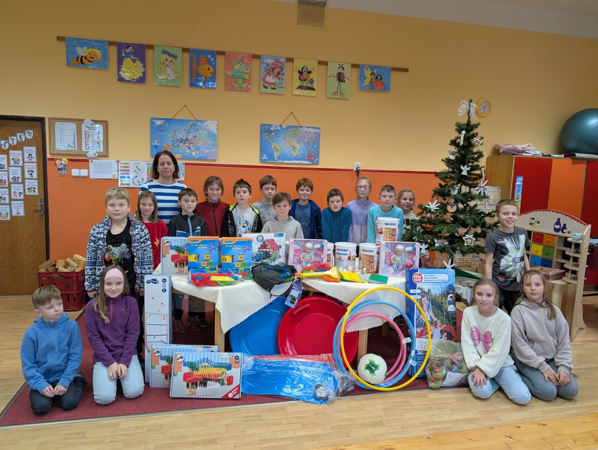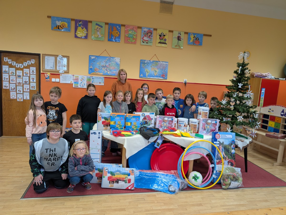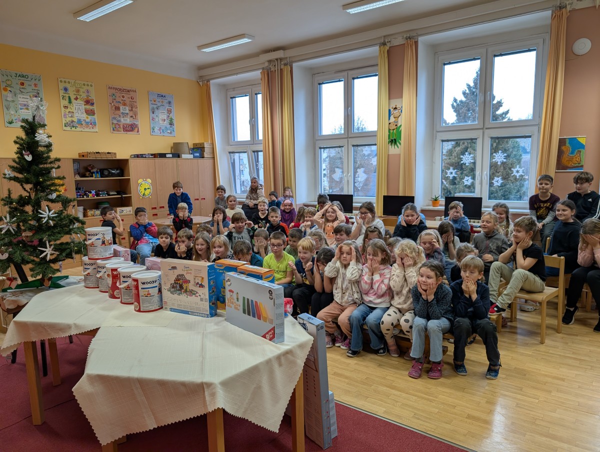 Vánoční kouzlo zavítalo i do naší školní družiny. Pod stromečkem děti našly spoustu krásných dárků a v tu chvíli bylo jasné, že radost je obrovská. Každý nový dárek znamenal další důvod ke smíchu, hře a společným zážitkům. Mezi novými hračkami nechyběly dřevěné stavebnice, panenky, molitanové plechovky, obruče ani hračky na písek. Pro venkovní pohybové aktivity byla pořízena také houpačka a boby na sníh. Děti byly nadšené, jejich oči zářily a úsměvy mluvily za vše. Díky novým pomůckám se rozšířily možnosti her jak v interiéru, tak venku. Na závěr bychom rádi poděkovali vedení školy za poskytnutí finančních prostředků, díky nimž bylo možné vánoční nadílku uskutečnit a připravit dětem krásný předvánoční zážitek.