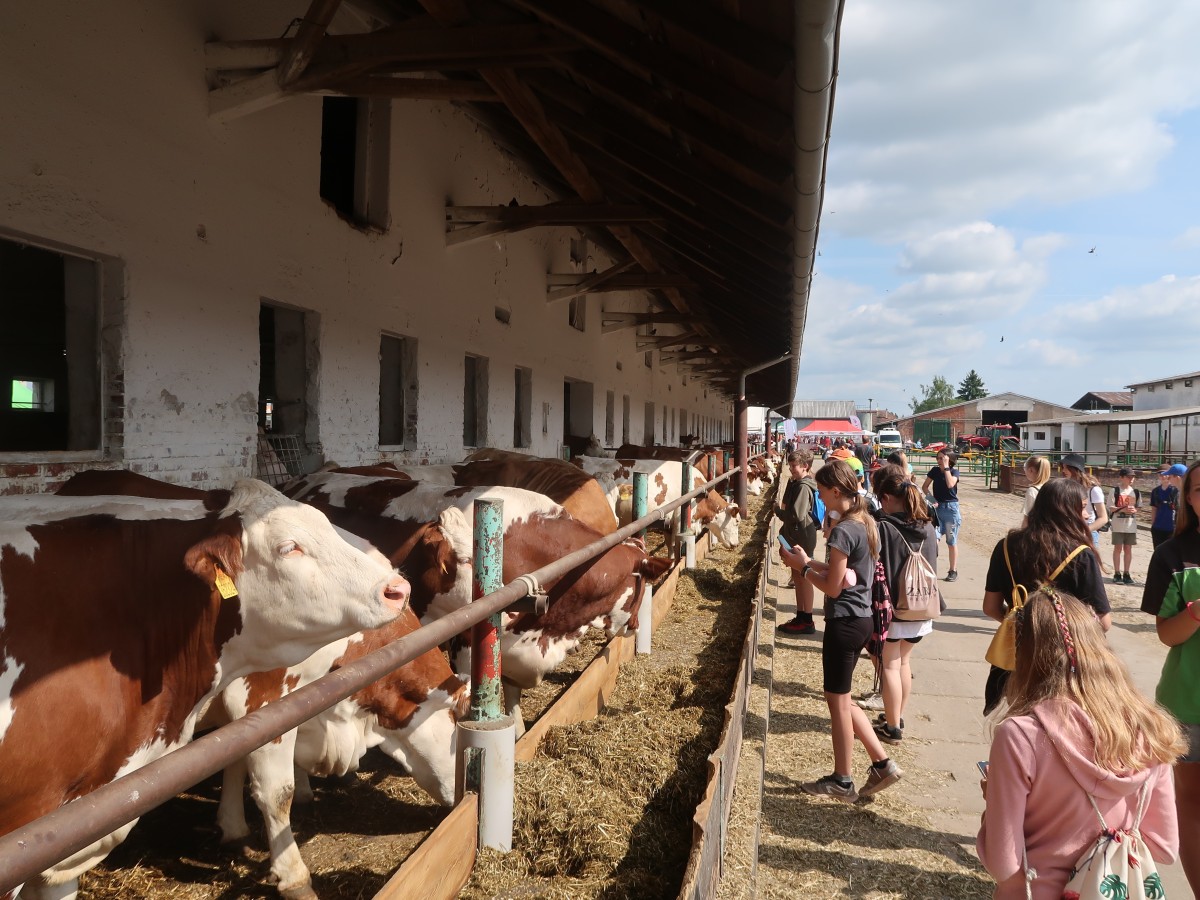 V rámci inovativního vzdělávání a oslavy MDD jsme se v pátek 2. 6. 2023 zúčastnili Zemědělského dne Mžany 2023. Ráno jsme vyrazili autobusy a vlakem směr Sadová. Celá akce probíhala v prostorách zemědělského statku Sovětice. Po zahájení si děti s odborným výkladem prohlédly provoz zemědělského střediska. Mohly si pohladit kravičky, telátka, a seznámit se s potřebami a způsobem chovu.