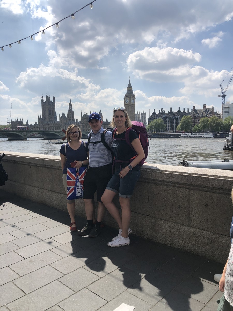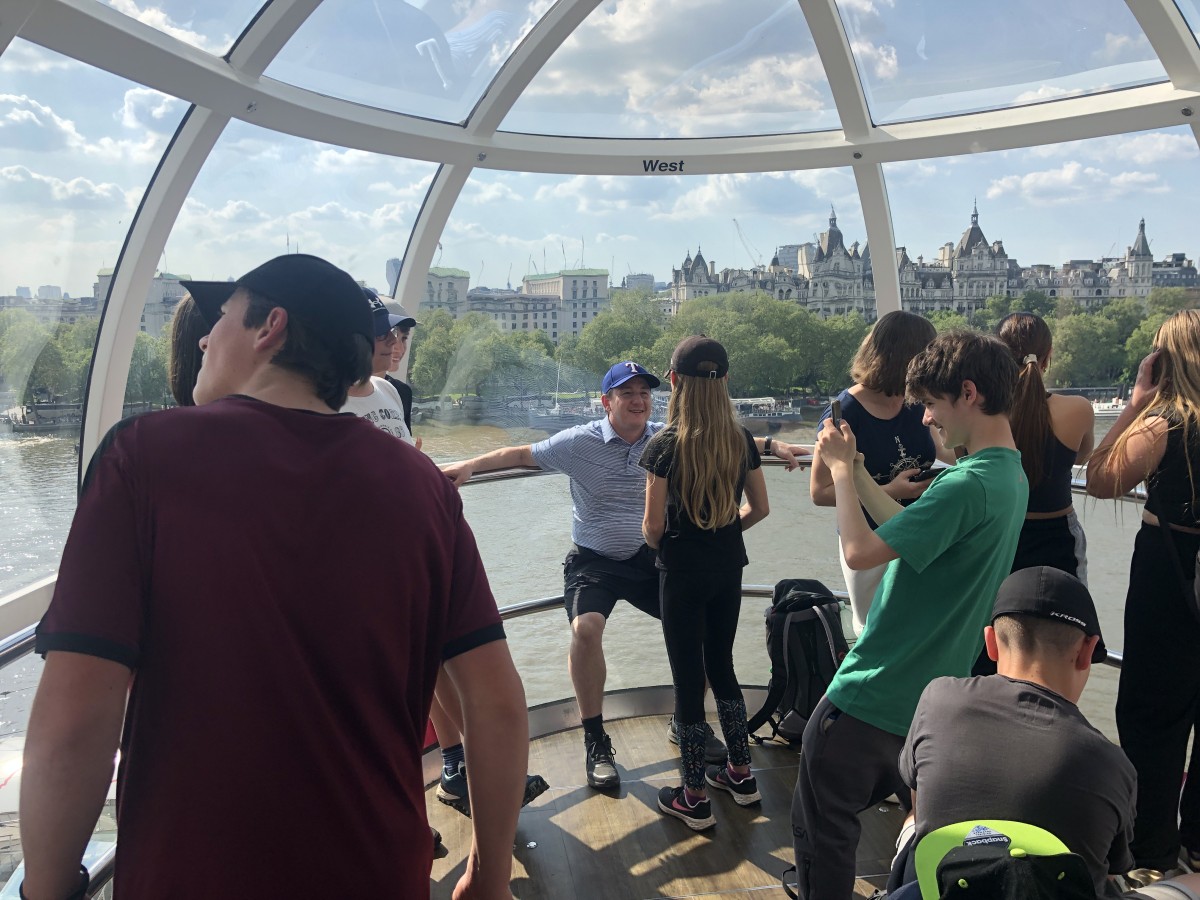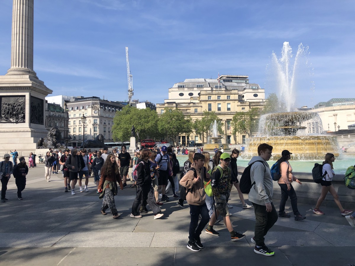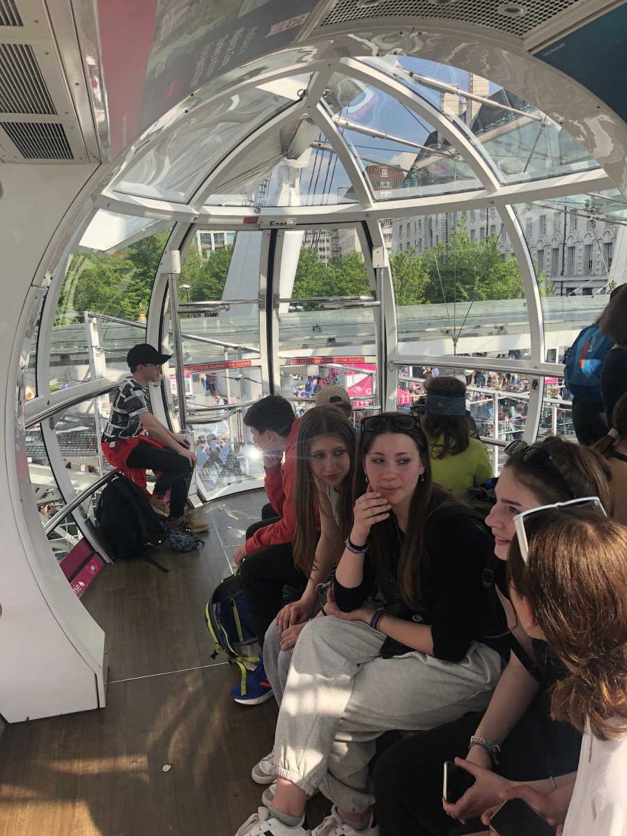 Ve městě jsme postupně navštívili Westminsterský palác, jehož součástí je hodinová věž Elisabeth Tower se zvonem Big Ben, Westminsterské opatství, Downing Street, Trafalgarské náměstí s mohutným Nelsonovým sloupem, náměstí Piccadilly Circus a také Buckinghamský palác. Jeli jsme londýnským metrem k vyhlídkovému Londýnskému oku (London Eye) a z výšky 135 metrů jsme měli hlavní město Anglie jako na dlani. Večer jsme se ubytovali po dvou až čtyřech v rodinách v okolí londýnské čtvrti Croydon.