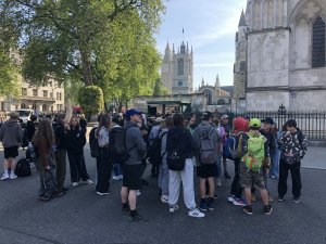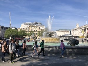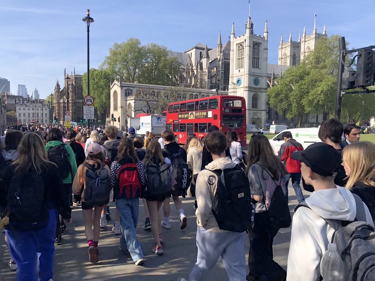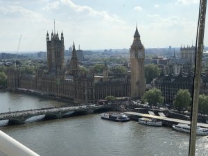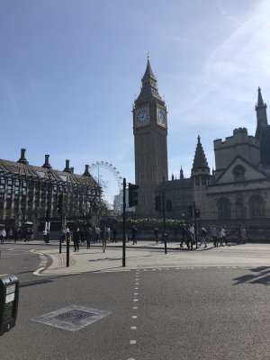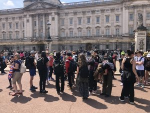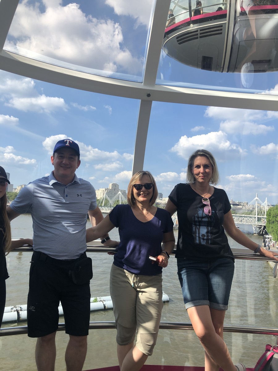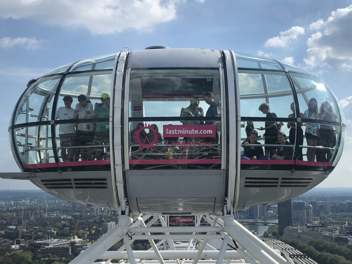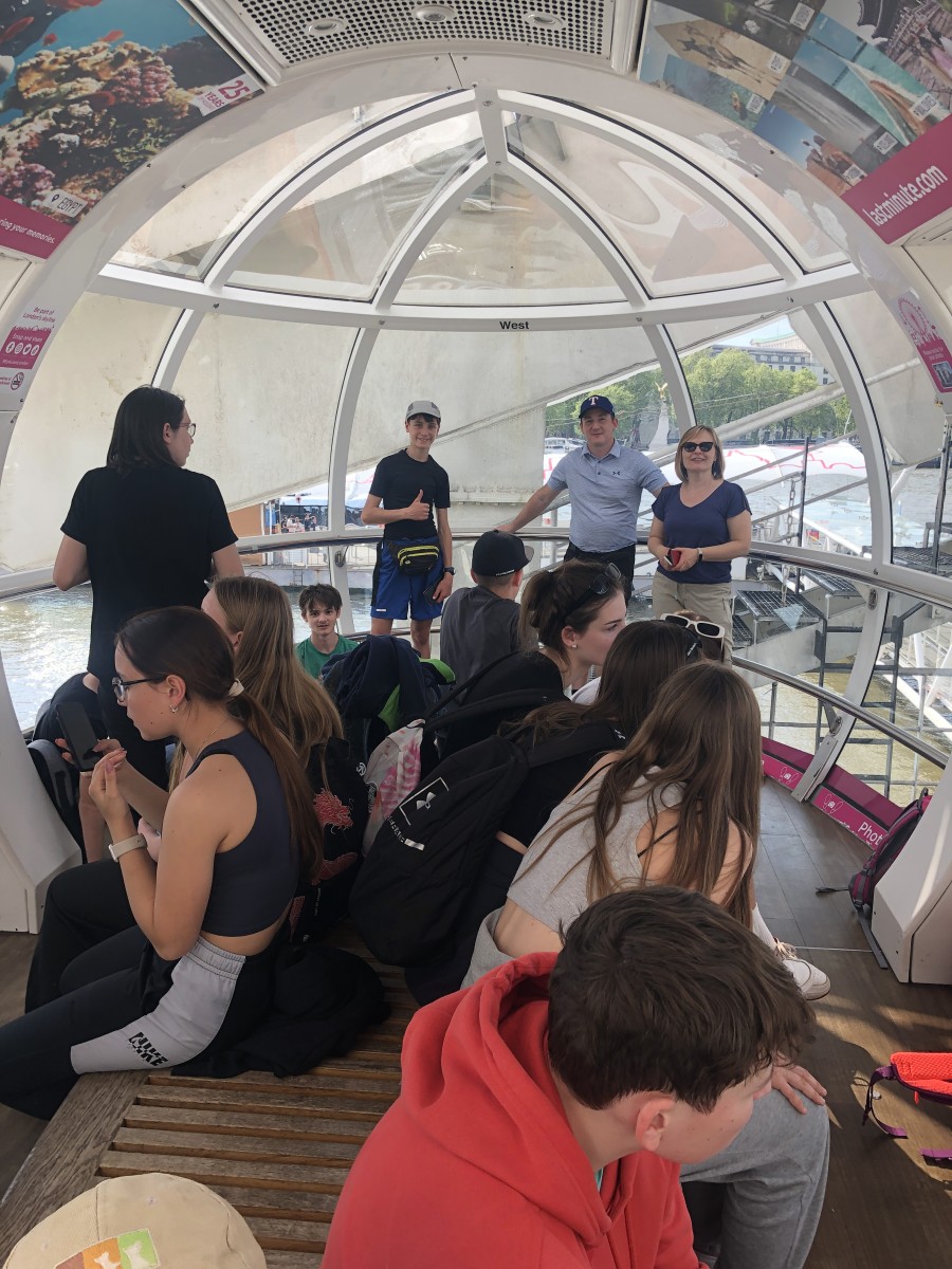 Ve městě jsme postupně navštívili Westminsterský palác, jehož součástí je hodinová věž Elisabeth Tower se zvonem Big Ben, Westminsterské opatství, Downing Street, Trafalgarské náměstí s mohutným Nelsonovým sloupem, náměstí Piccadilly Circus a také Buckinghamský palác. Jeli jsme londýnským metrem k vyhlídkovému Londýnskému oku (London Eye) a z výšky 135 metrů jsme měli hlavní město Anglie jako na dlani. Večer jsme se ubytovali po dvou až čtyřech v rodinách v okolí londýnské čtvrti Croydon.