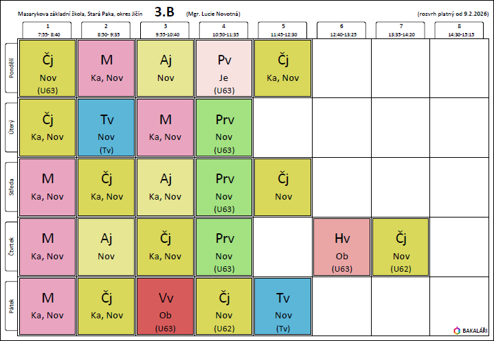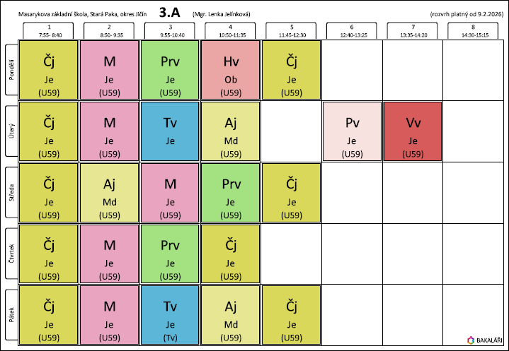 Rozvrh hodin - 1. stupeň